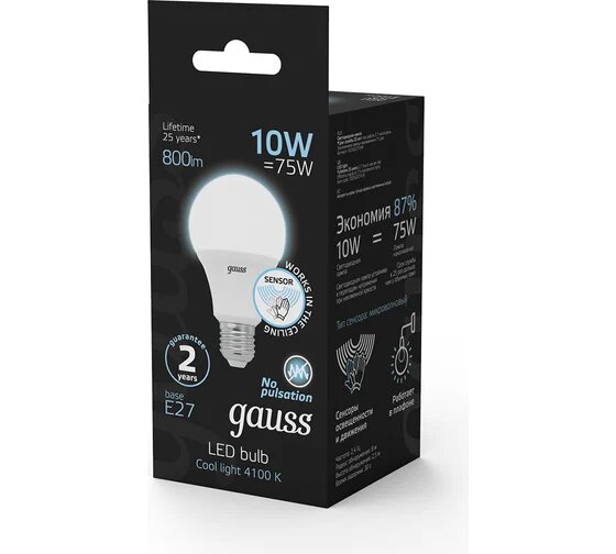 Ниже Вы можете прочитать отзывы на Лампа светодиодная gauss 102502210, E27, A60, 10 Вт, 4100 К, ознакомится с подробными характеристиками, посмотреть интересные обзоры и фотографии на Лампа светодиодная gauss 102502210, E27, A60, 10 Вт, 4100 К.