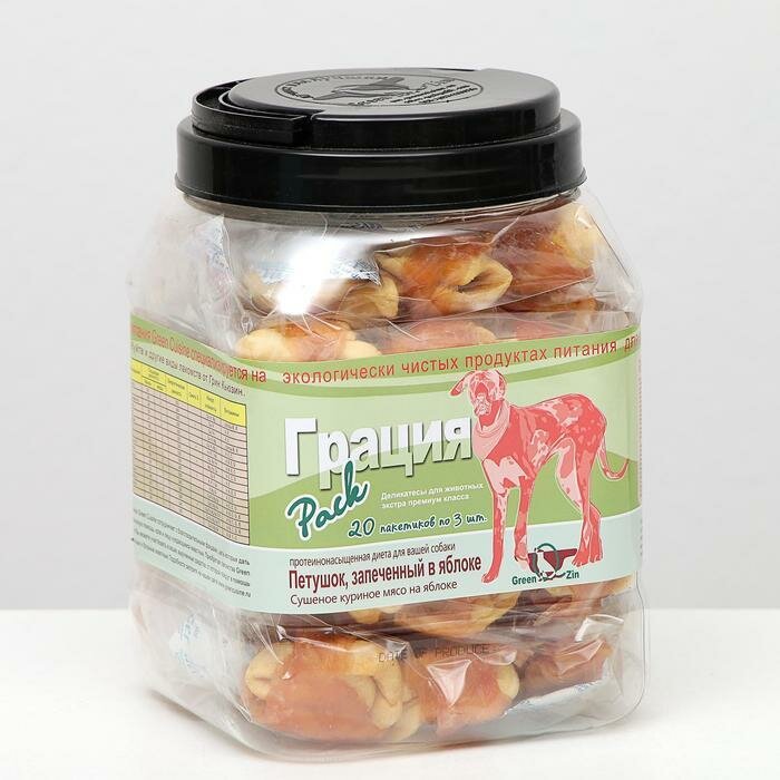 Грин Кьюзин 18727 Лакомство д/собак Грация (Петушок запеченный в яблоке) туба Pack 600гр