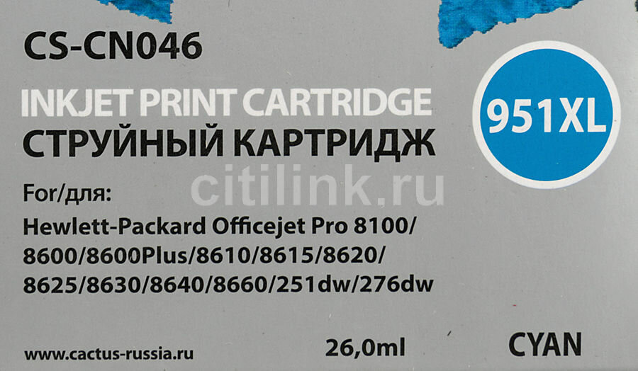 Ниже Вы можете прочитать отзывы на Картридж Cactus CS-CN046 №951XL голубой, ознакомится с подробными характеристиками, посмотреть интересные обзоры и фотографии на Картридж Cactus CS-CN046 №951XL голубой.