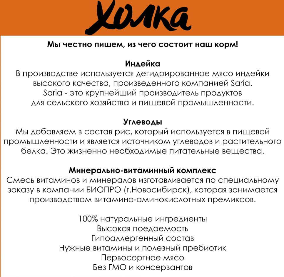 Корм холка гипоаллергенный премиум класса для щенков собак мелких пород с индейкой и рисом, 750 гр.