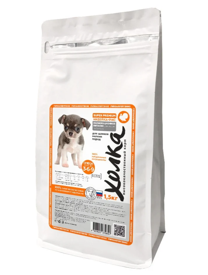 Корм холка гипоаллергенный премиум класса для щенков собак мелких пород с индейкой и рисом, 1.5 кг