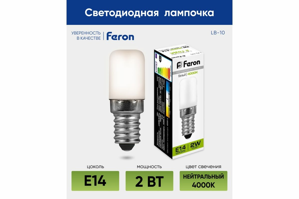 FERON Лампа светодиодная, 2W 230V E14 4000K, LB-10 25897 интересное: