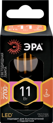 Типы/Лампочки/Филаментные ЭРА Лампа светодиодная филаментная ЭРА E14 11W 2700K прозрачная F-LED P45-11w-827-E14 Б0047012