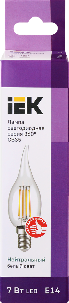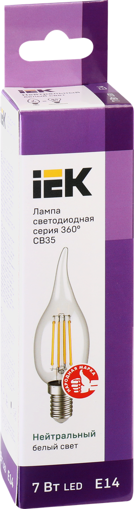 Iek светодиодные лампы LLF-CB35-7-230-40-E14-CL Лампа LED СВ35 св.н ветру 7Вт 230В 4000К E14 серия 360