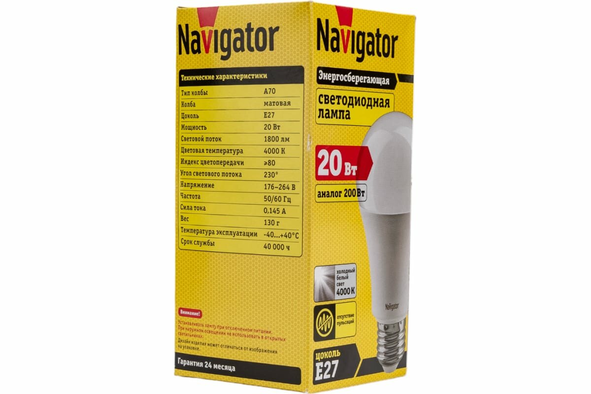 Лампа Navigator (61 282 / NLL-A70-20-230-4K-E27 / 20339)