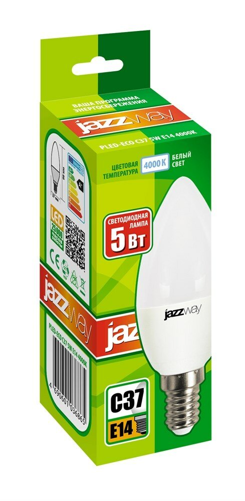 Лампа светодиодная PLED-ECO 5Вт C37 свеча 4000К нейтр. бел. E14 400лм 220-240В JazzWay 1036865A (1 шт) интересное: