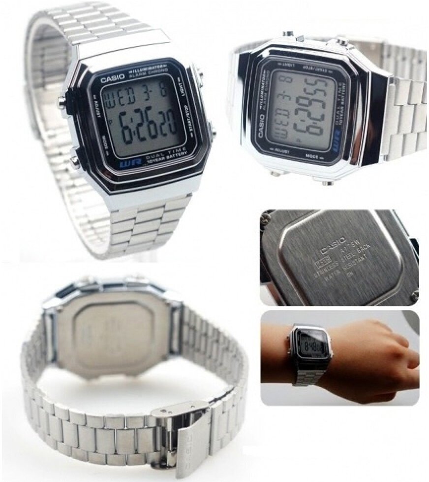 | Отзыв: | Супер "олд скульные" и стильные часы. Эта модель смотрится нормально на мужской руке, в смысле вариации 178 модели. Я сначала купил самые аутентичные Casio, модель A168W-1, но они выглядят слишком маленькими на мужской руке(у меня рост 183, среднее телосложение), а вот на женской руке они смотрятся отлично ну или на мужской небольшого размера. В общем очень советую сравнить эти модели на руке. |