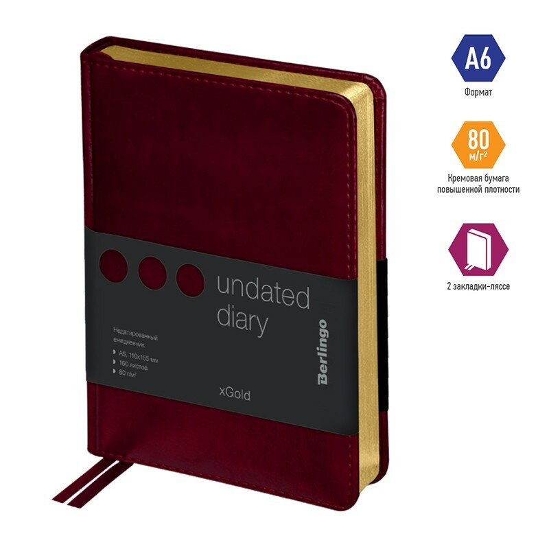 Ежедневник недатированный Berlingo A6, 160 листов, кожзам, "xGold", золотой срез, бордовый (UD0_81604)