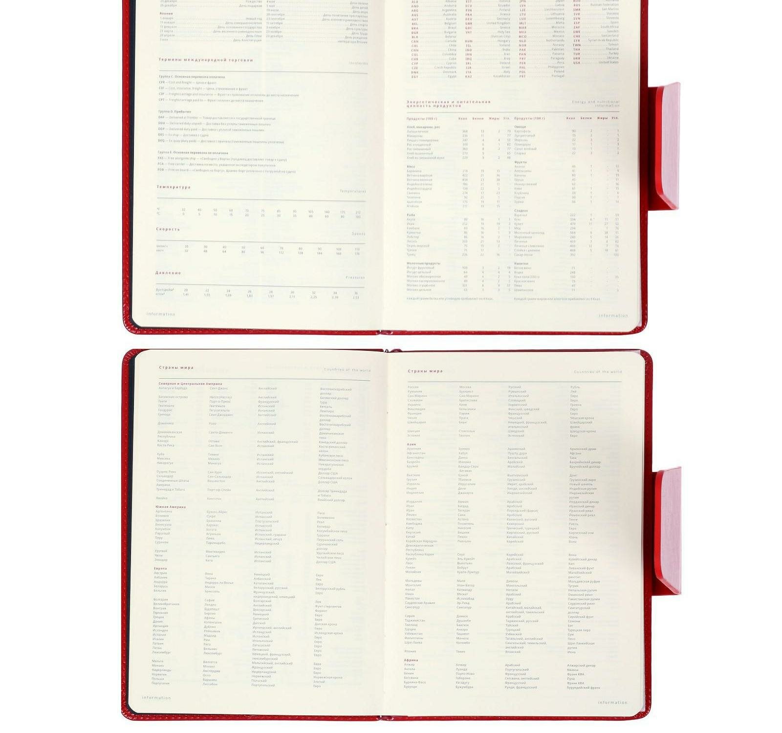 | Особенности | закругленные углы / ляссе / прошивка по периметру обложки / справочная информация |