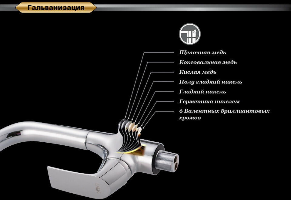 D&K Смеситель для кухни D&K DA1282401 Хром