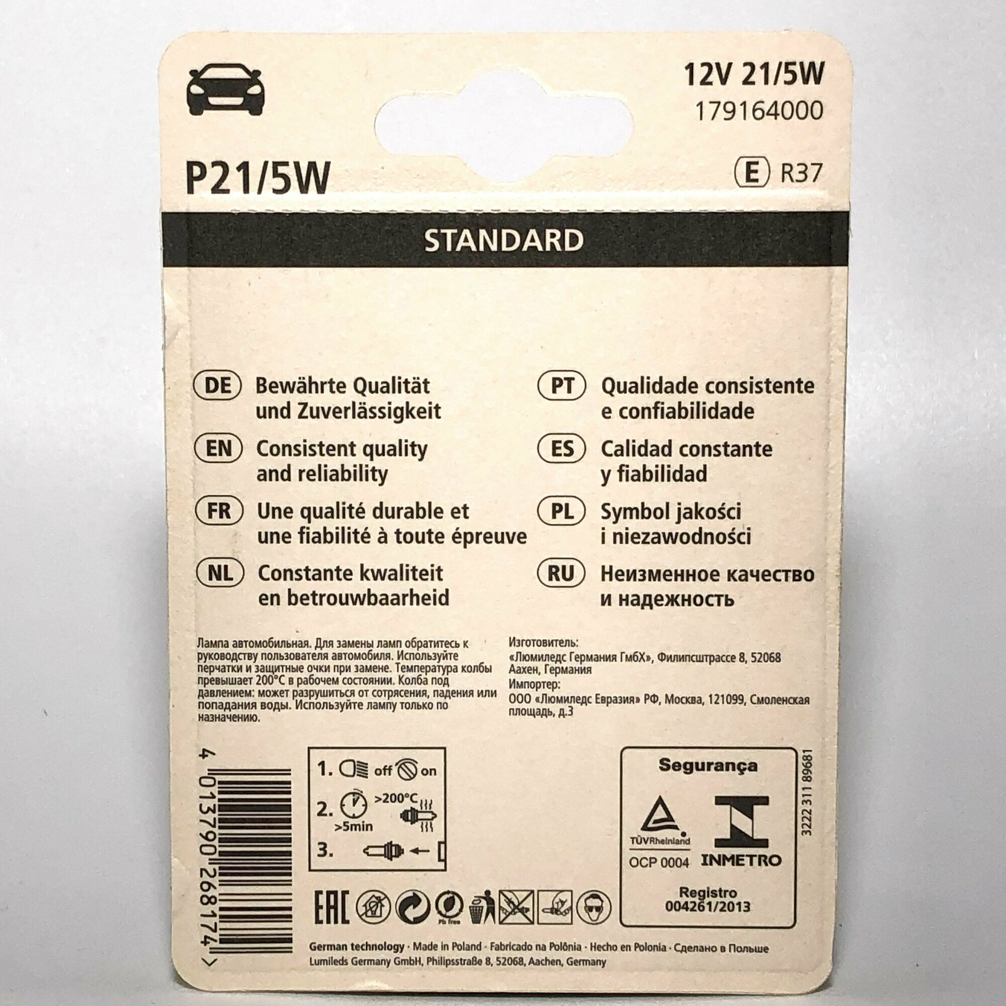 NARVA 179164000 лампа P21/5W 12V (К-КТ 2 ШТ В блистере)