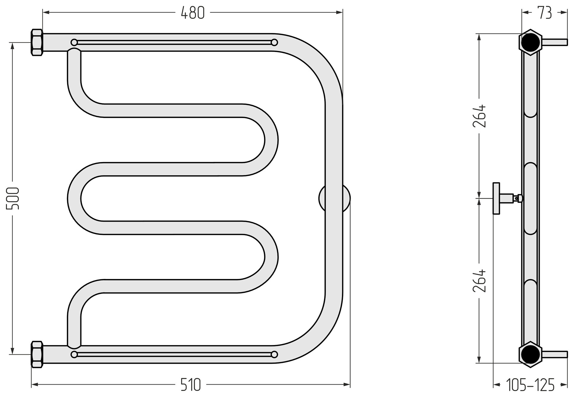 Водяной полотенцесушитель Сунержа Лира 2П 500x500 без покрытия