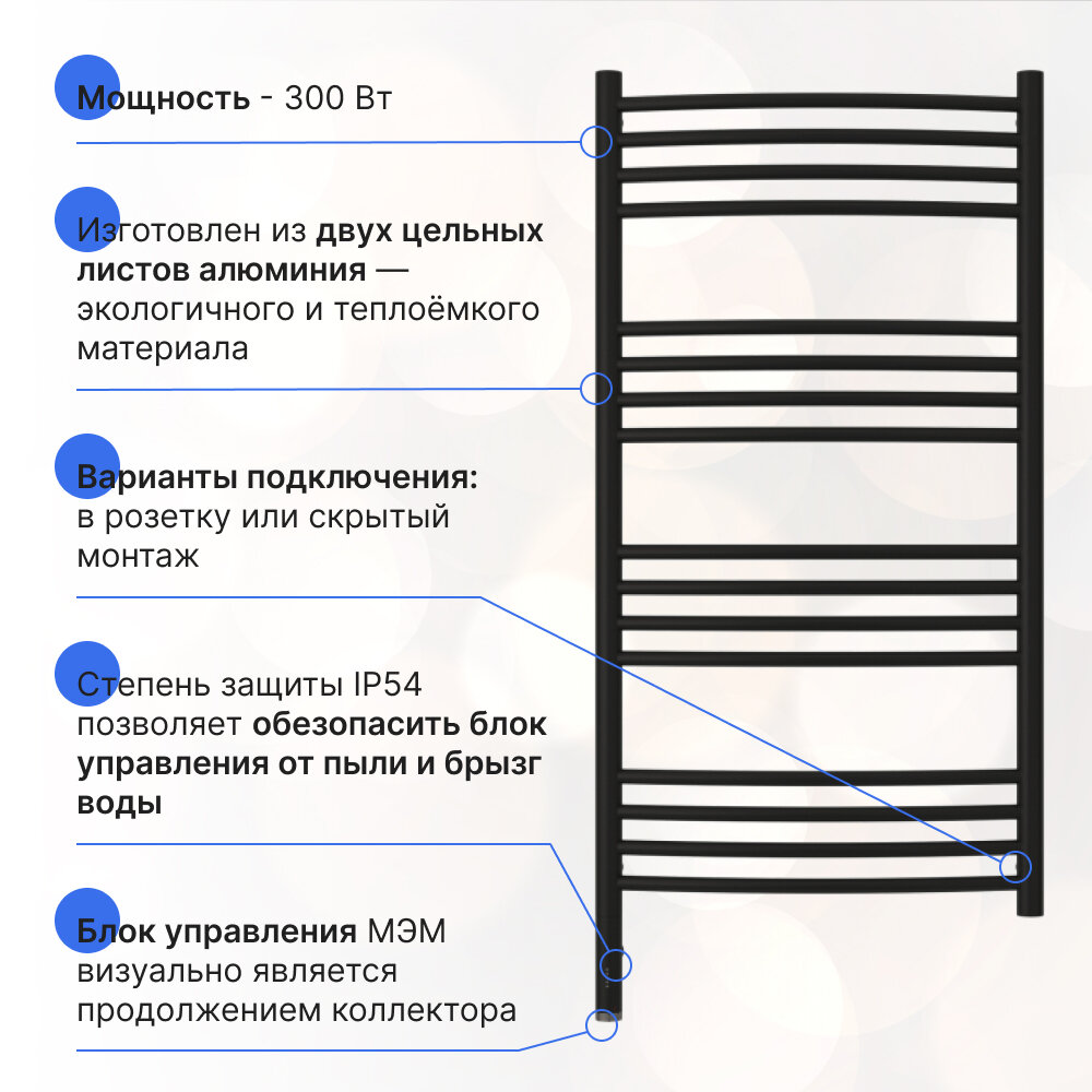 Полотенцесушитель электрический Сунержа Богема 3.0 выгнутая 1000х500 МЭМ левый Матовый чёрный