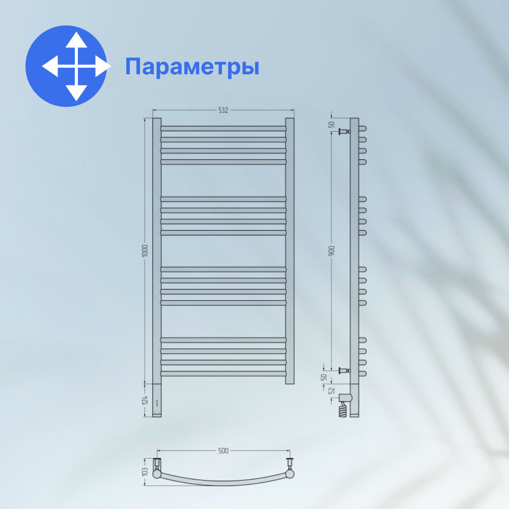 Полотенцесушитель электрический Сунержа Богема 3.0 выгнутая 1000х500 МЭМ левый Матовый белый