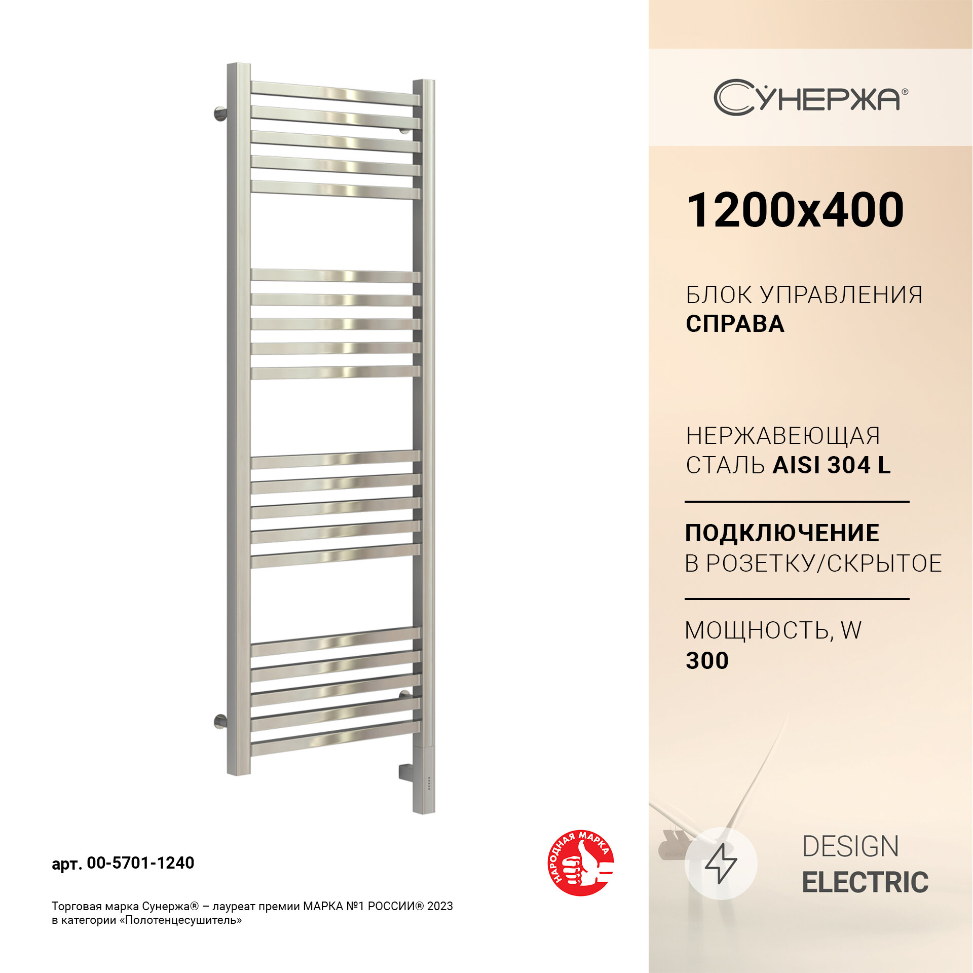 Полотенцесушитель электрический Сунержа Модус 3.0, 1200х400, МЭМ правый, сталь полированная 00-5701-1240