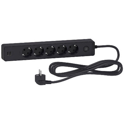 Купить "Удлинитель SE Unica Extend Черный 5 розеток 2К+З, кабель 3м, 2 USB"