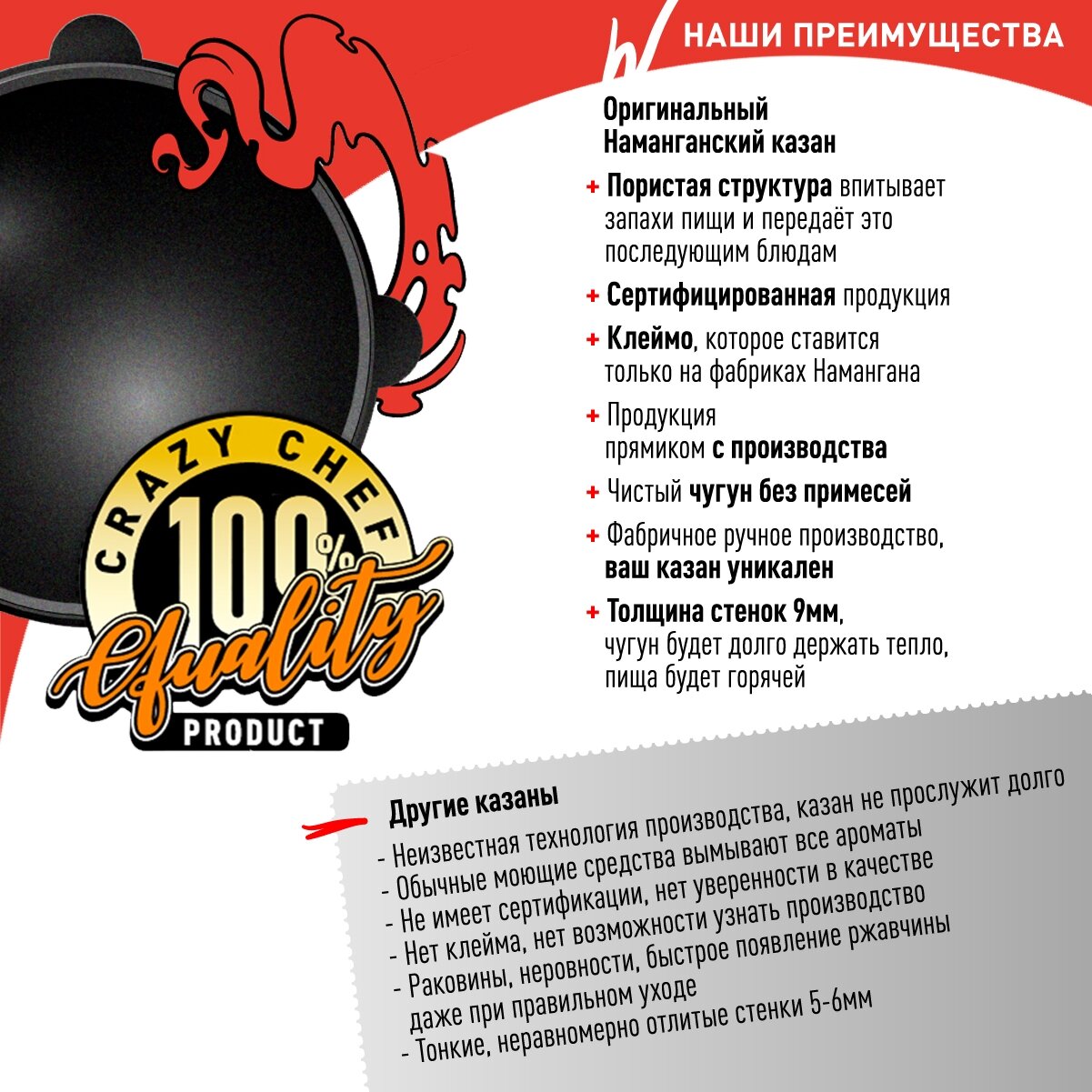 | Плюсы: | отличный казан, ровное литье |
