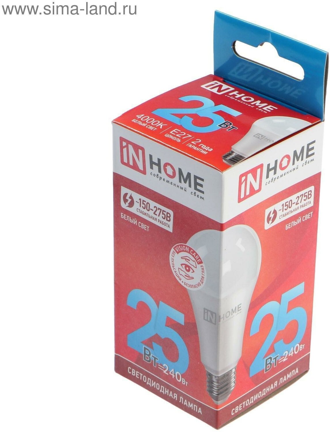 Лампа светодиодная IN HOME LED-A65-VC, Е27, 25 Вт, 230 В, 4000 К, 2250 Лм