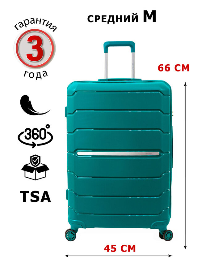 СохранитьЧемодан облегченный из полипропилена Supra Luggage STS-1004-M, Marine Green коллекция ART "Девятый вал", замок TSA, 60 литров, 4 колеса с поворотом на 360 градусов, 45X27X66 см интересное: