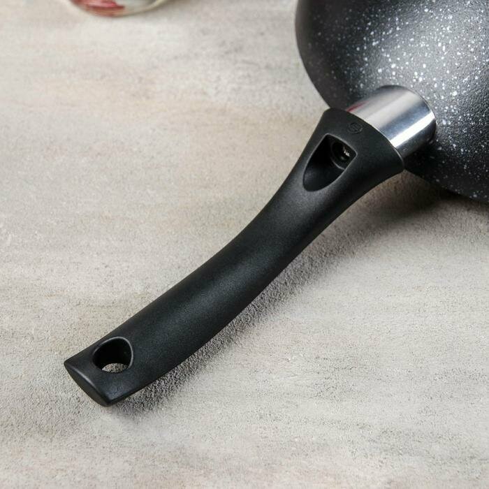 Сковорода-Wok, d=28, с ручкой, антипригарное покрытие, тёмный мрамор