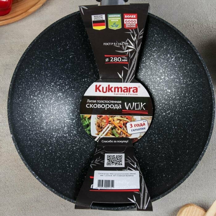 Сковорода-Wok, d 28, с ручкой, антипригарное покрытие, тёмный мрамор интересное:
