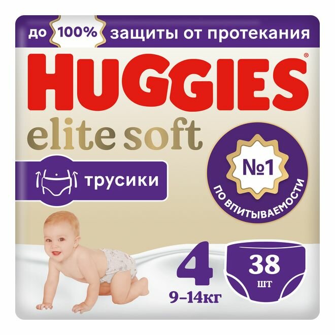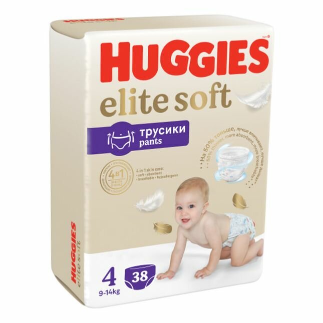 Трусики-подгузники Huggies Elite Soft ➃ 9-14 кг 38 шт