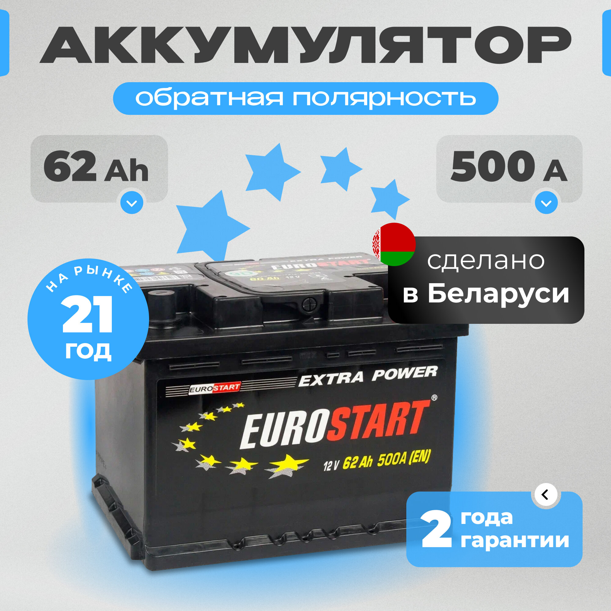 Купить Аккумулятор автомобильный EUROSTART Extra Power (низкий) 62 Ah 500 A обратная полярность 242x175x175
