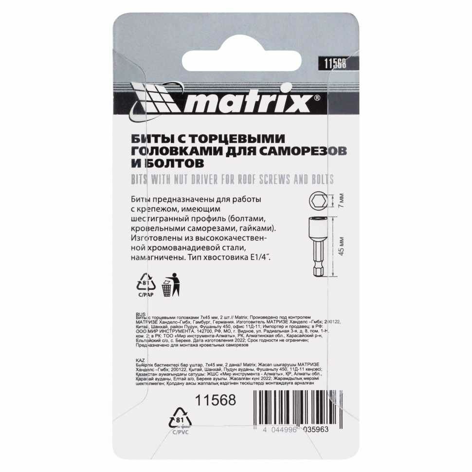 Биты с торцевыми головками Matrix 11568 7x45 мм, 2 шт
