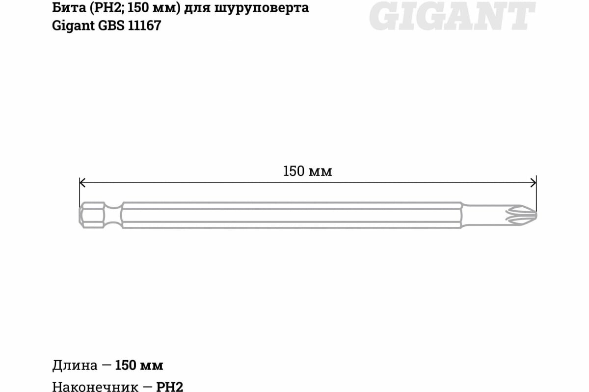 Бита (PH2: 150 мм) для шуруповерта Gigant GBS 11167 15909430