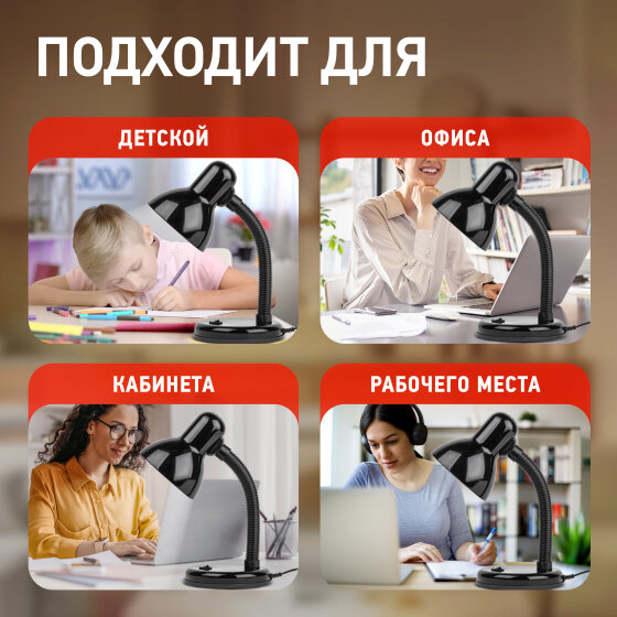 Лампа офисная ЭРА N-120-E27-40W-BK, E27, 40 Вт, черный