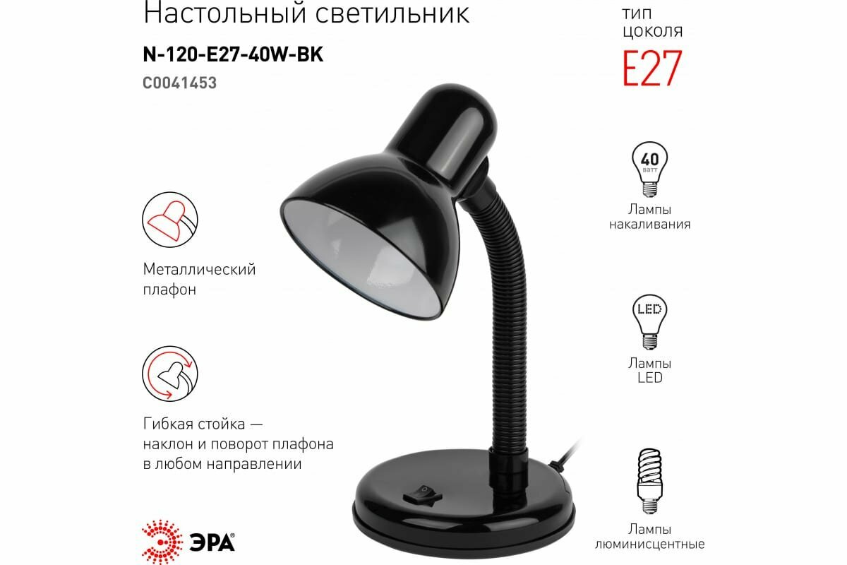 Настольная лампа ЭРА N-120-E27-40W-BK C0041453
