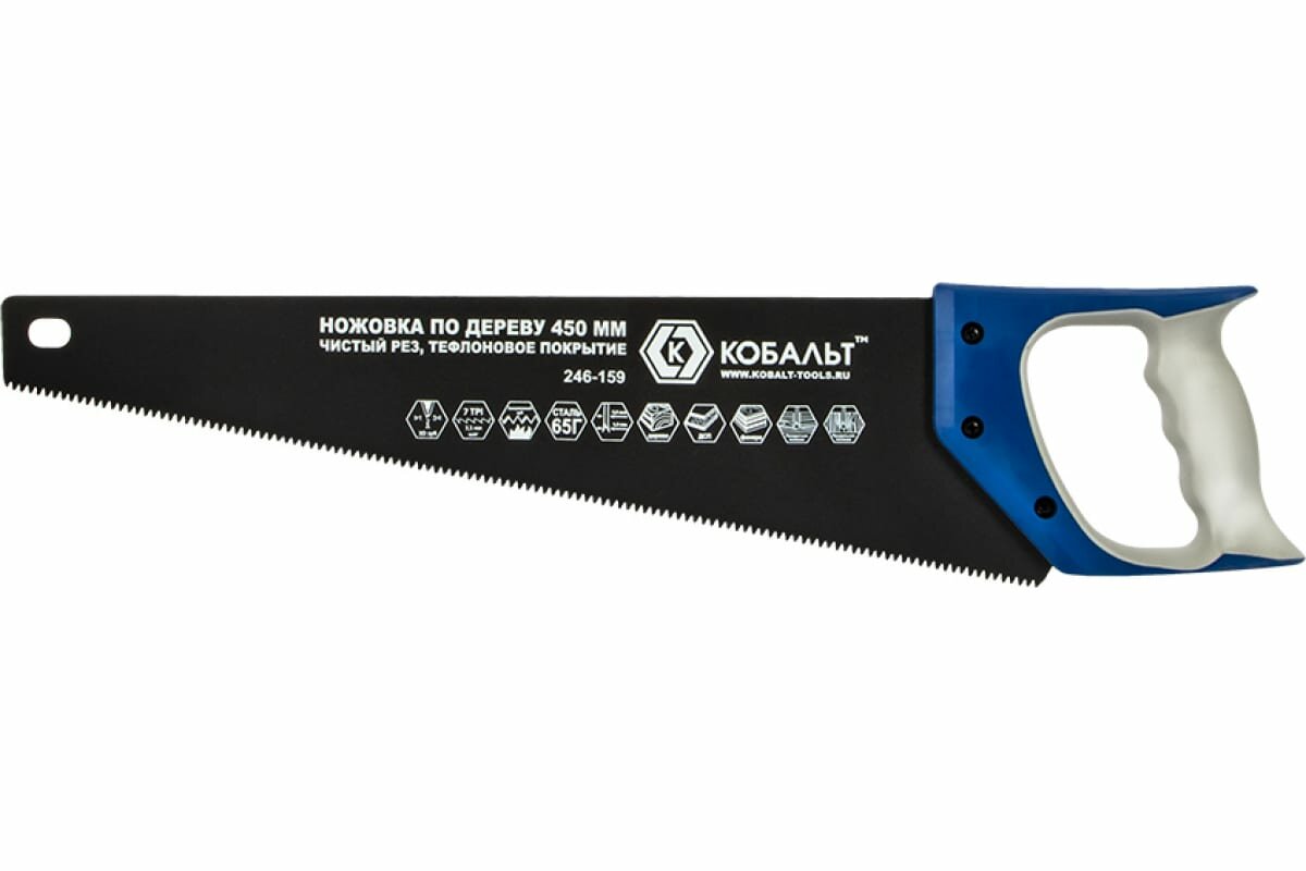 Ножовка по дереву кобальт 450 мм, шаг 3,5 мм/ 7 TPI, тефлоновое покрытиезакаленный зуб, 3D-заточка, двухкомпонентная рукоятка, чистый рез