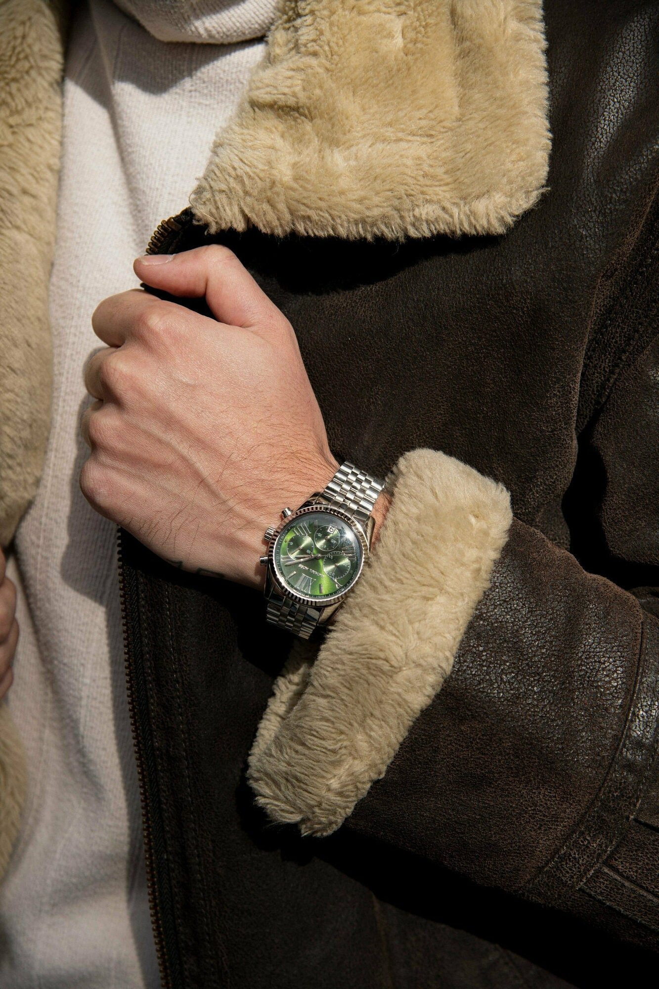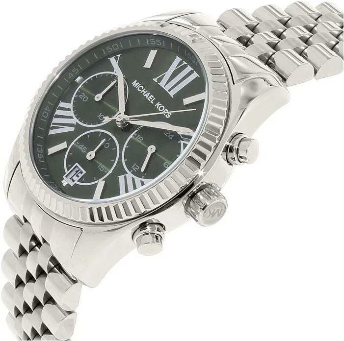 Наручные часы Michael Kors серебристые с зеленым циферблатом, хронограф