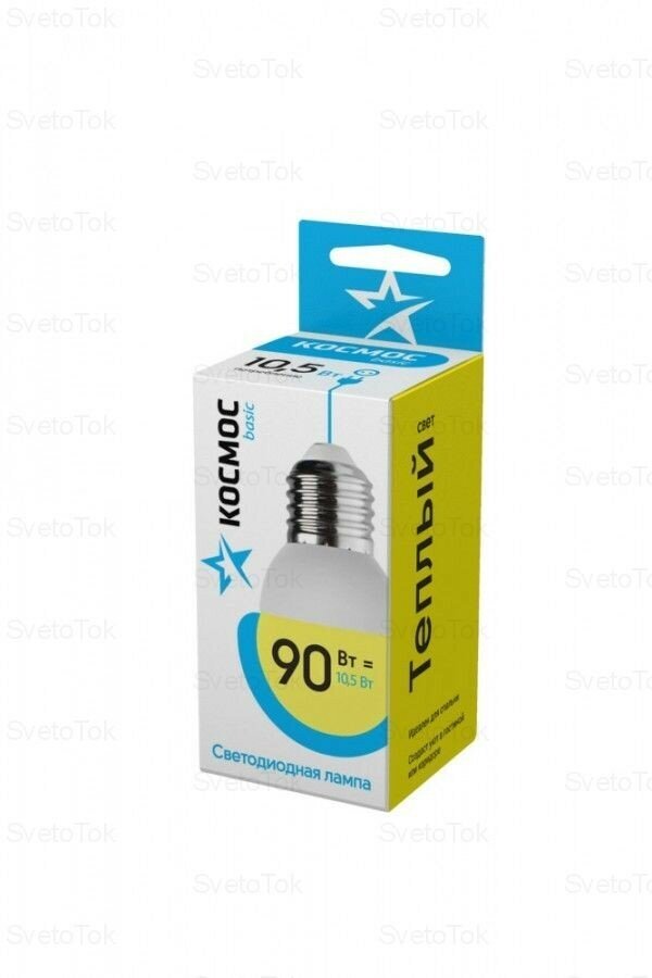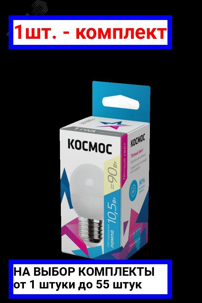 Лампочки светодиодные Космос Шарик 10.5Вт Е27 (аналог 90Вт) Теплый свет, 1 шт.