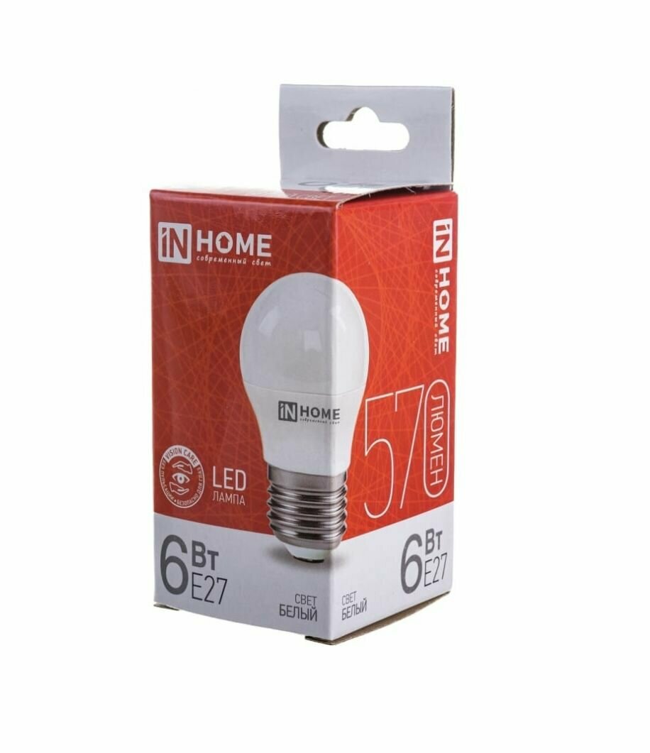 Лампа светодиодная IN HOME LED-ШАР-VC, Е27, 6 Вт, 230 В, 3000 К, 480-540 Лм
