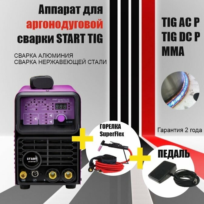 Сварочный аппарат аргонодуговой сварки START 205 modelTIG AC/DC TIG PULSE Установка TIG инверторный 3W205AP (TIG+MMA)
