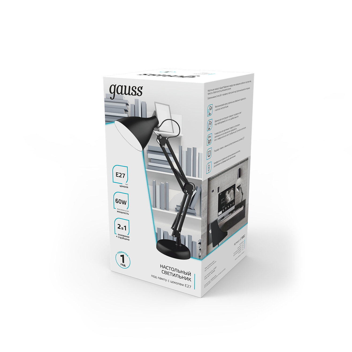 Настольная лампа GAUSS GTL003 60W 220-240V E27 черный струбцина и основание 1/12