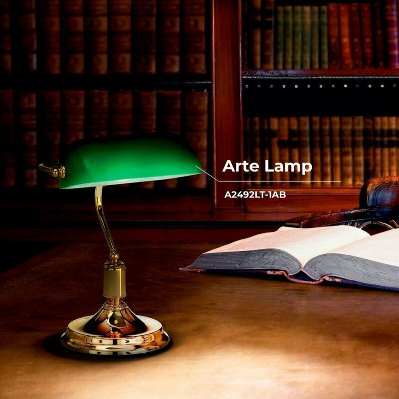 Настольная лампа офисная Arte Lamp Banker A2492LT-1AB Цвет арматуры бронза Цвет плафонов зеленый
