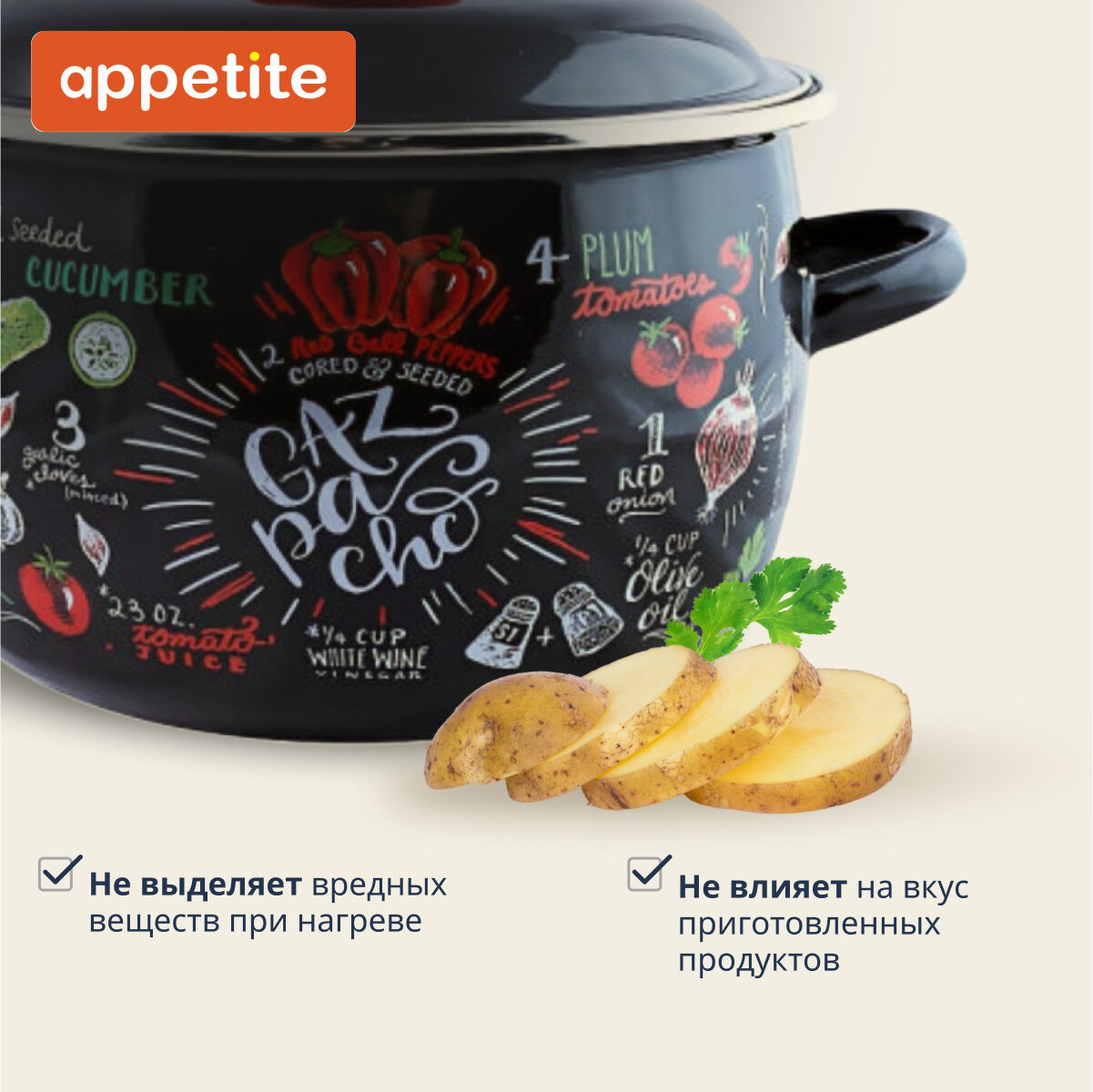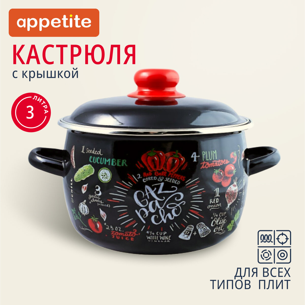 Кастрюля эмалированная Appetite Gazpacho, с крышкой, 3 л