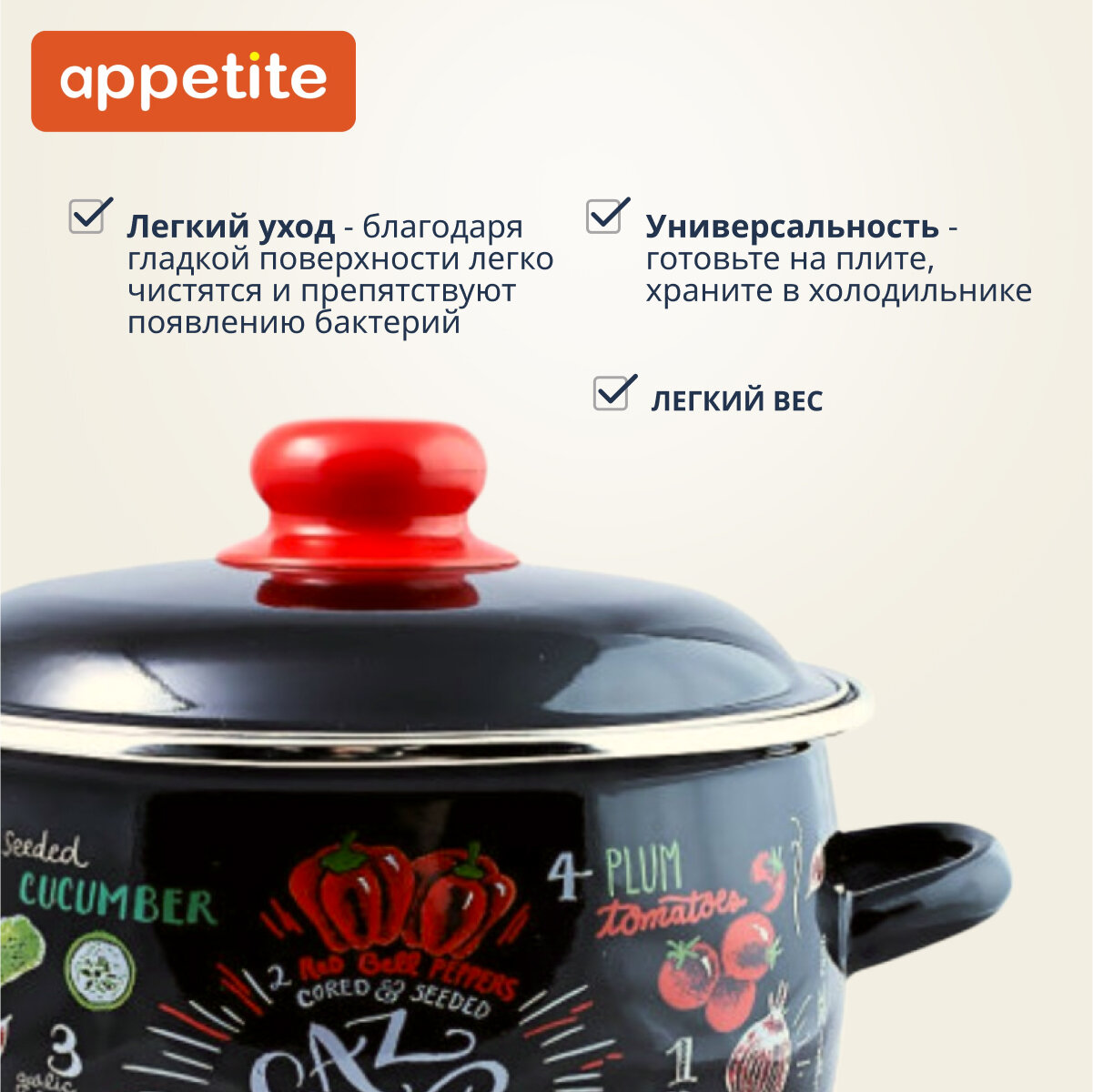 Кастрюля эмалированная с крышкой Gazpacho 3,0л ТМ Appetite