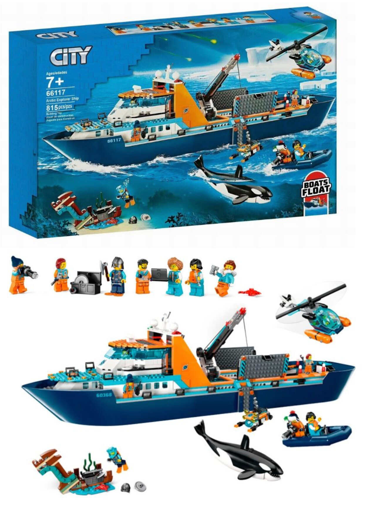 Конструктор City. Сити: Корабль "Исследовательское судно" 745 деталей. 66113