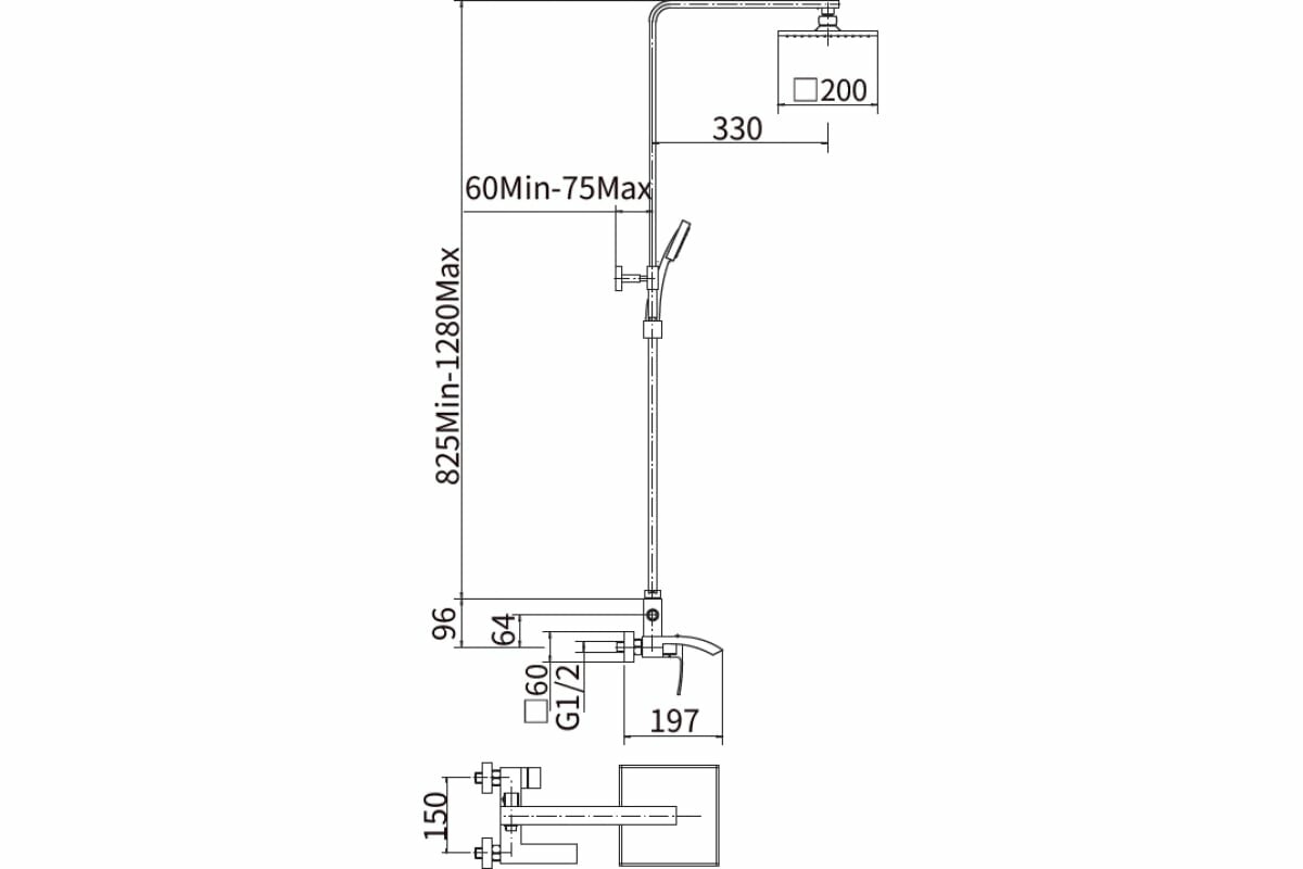 | Форма бокового душа | прямоугольная |