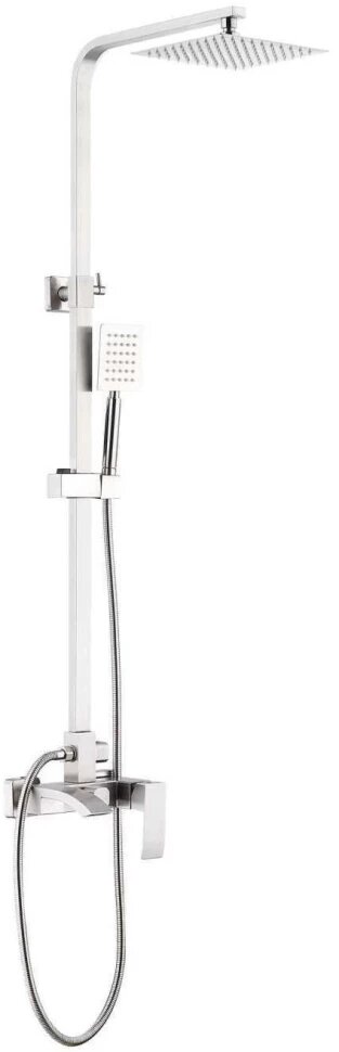 A52418 Душевая стойка, SUS304, сатин (шланг с лейкой, душевая стойка с лейкой "тропический душ" квадратная, картриджный переключатель, крепление, эксцентрики, отражатели)