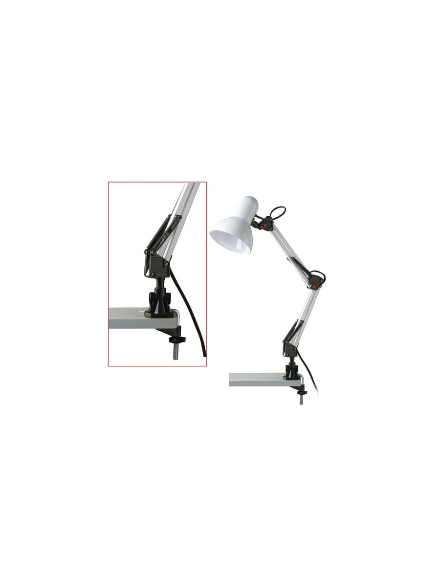 Настольная лампа-светильник SONNEN TL-007, подставка + струбцина, 40 Вт, Е27, белый, высота 60 см, 235539, в комплекте 1шт