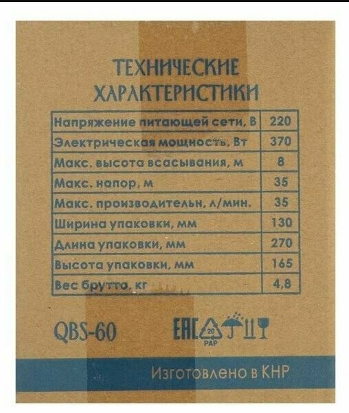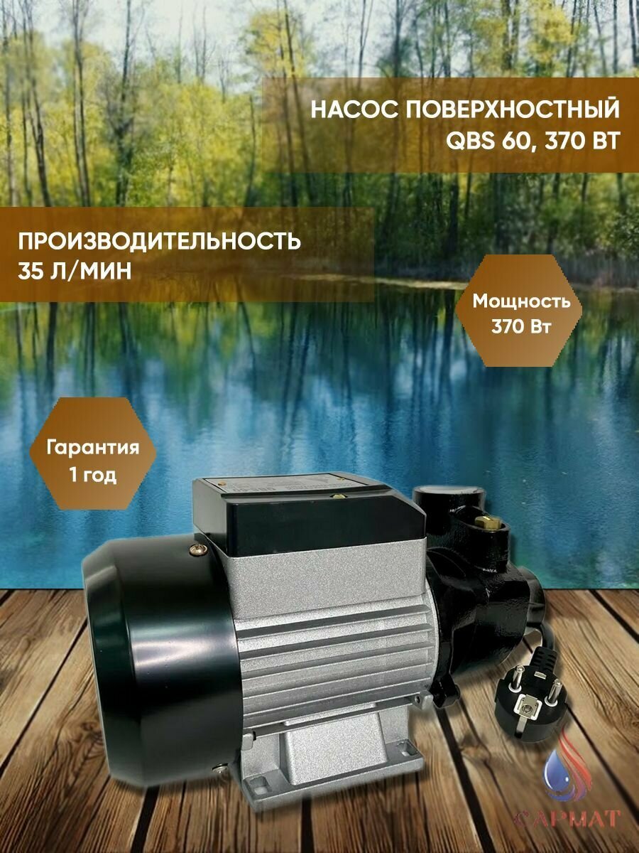 Насос поверхностный вихревой Sarmat QBS- 60, 370 Вт, напор 35 м, 35 л/мин, садовый водяной насос интересное: