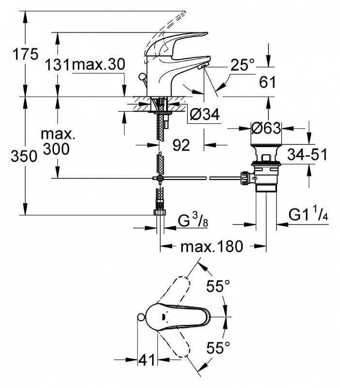 Смеситель однорычажный для биде с донным клапаном, хром Grohe Europlus 33241002