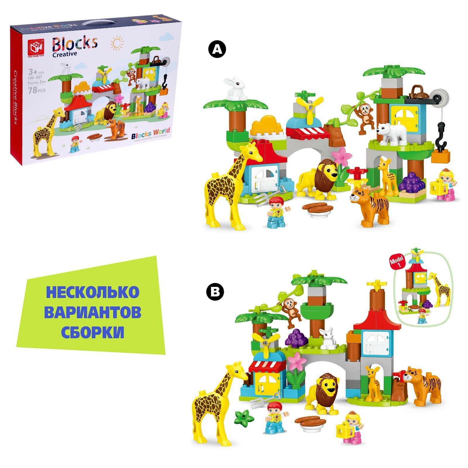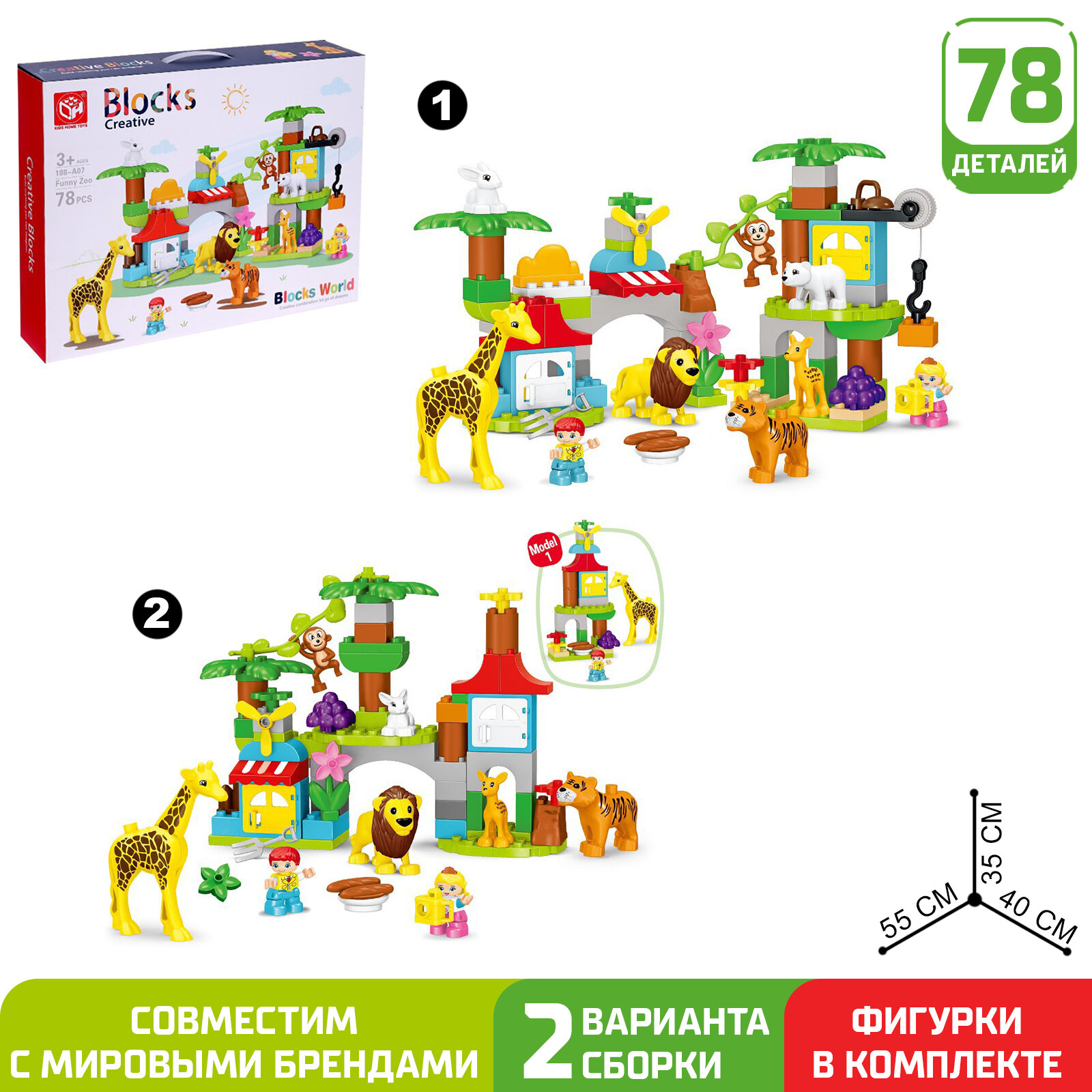 Конструктор KIDS HOME TOYS "Чудесный зоопарк", 2 варианта сборки, 78 деталей (188)
