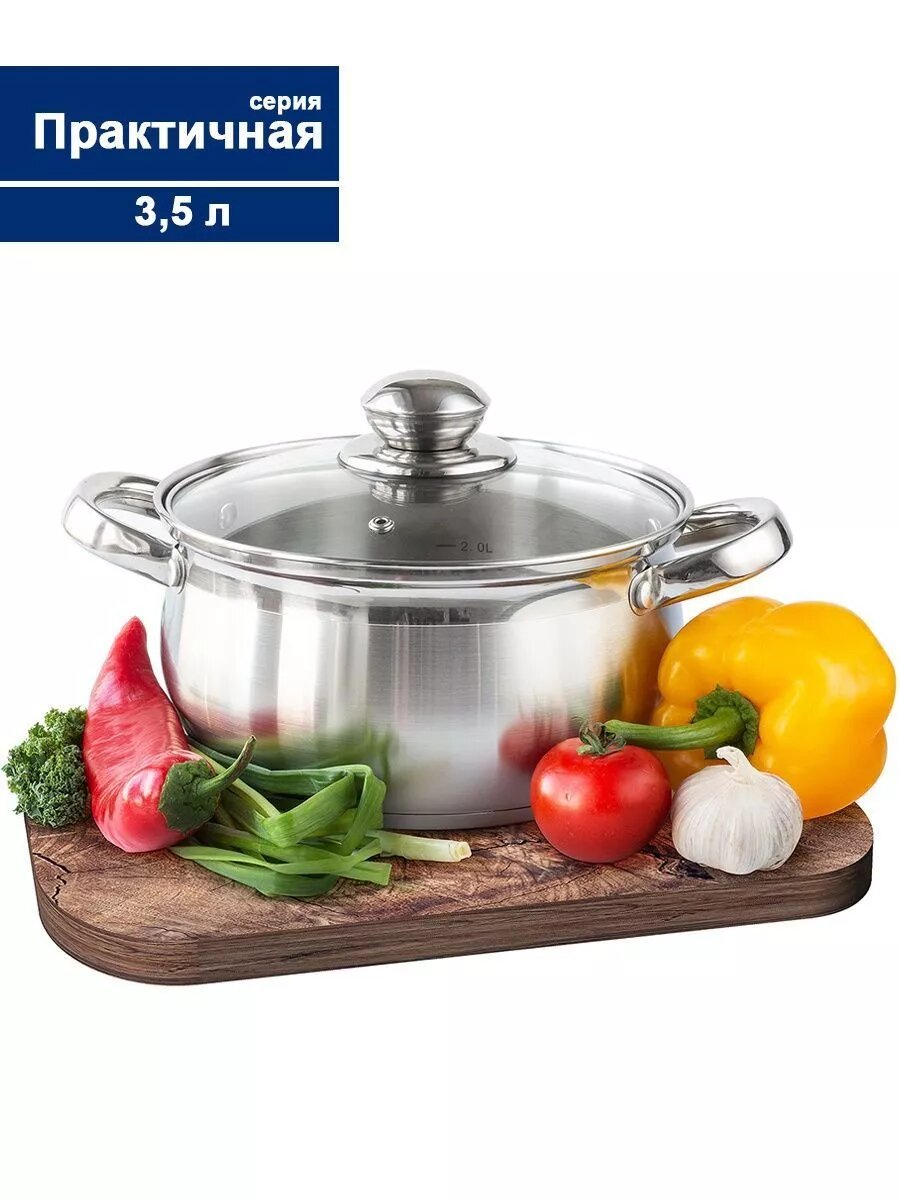 СохранитьКастрюля нерж.сталь с крышкой, объем 3,5л, стенки 0,6мм, Практичная, П-2035 TimA интересное: