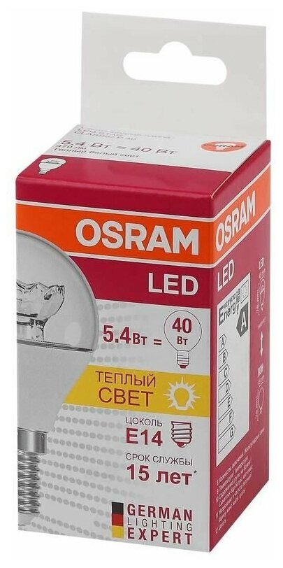 Ниже Вы можете прочитать отзывы на Лампа светодиодная OSRAM Led Star Classic P 40 830 CL, E14, P43, 5.4 Вт, 3000 К, ознакомится с подробными характеристиками, посмотреть интересные обзоры и фотографии на Лампа светодиодная OSRAM Led Star Classic P 40 830 CL, E14, P43, 5.4 Вт, 3000 К.