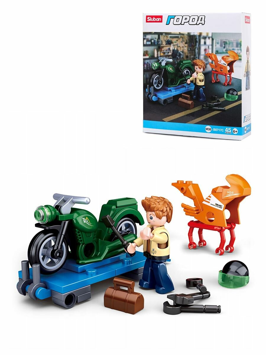 Конструктор пластиковый детский "Мото сервис" SLUBAN M38-B0717C "Город" (45 деталей)